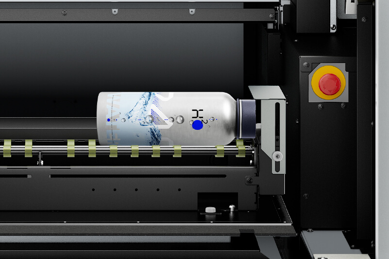 新的可選旋轉(zhuǎn)軸安裝簡(jiǎn)單快捷,可用于直徑 10-121 毫米、長(zhǎng)度 30-540 毫米的瓶子和其他圓柱形物品的打印。